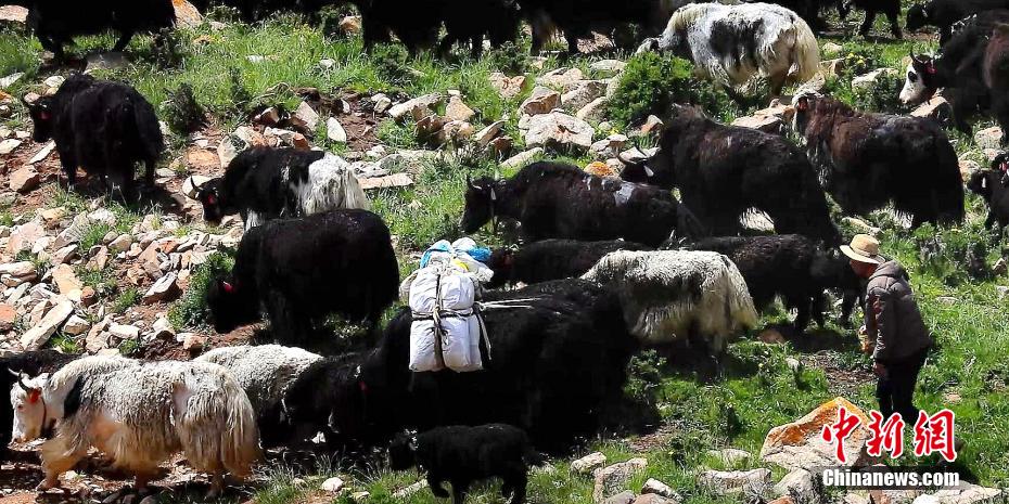 圖為牧民讓牦牛背上“行李”轉(zhuǎn)場。 仁青多杰 攝