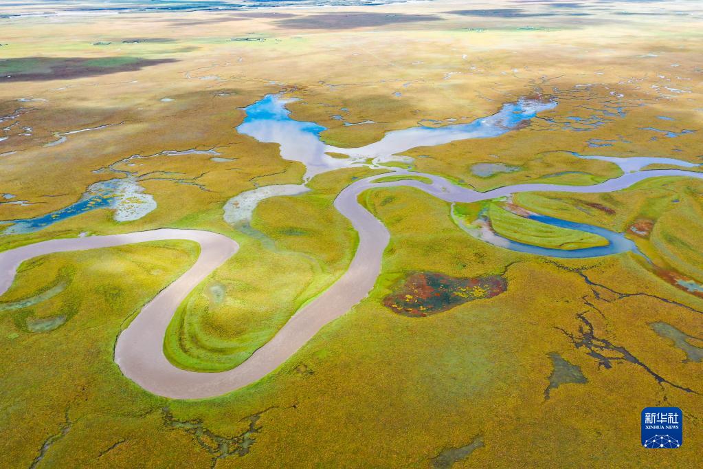 9月17日拍攝的阿萬(wàn)倉(cāng)濕地風(fēng)光(無(wú)人機(jī)照片)。新華社記者 郎兵兵 攝