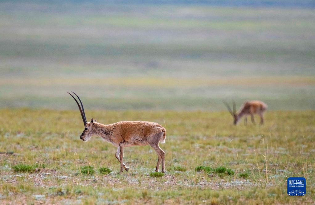 這是在羌塘國(guó)家級(jí)自然保護(hù)區(qū)內(nèi)拍攝的藏羚羊(2022年7月11日攝)。新華社記者 晉美多吉 攝