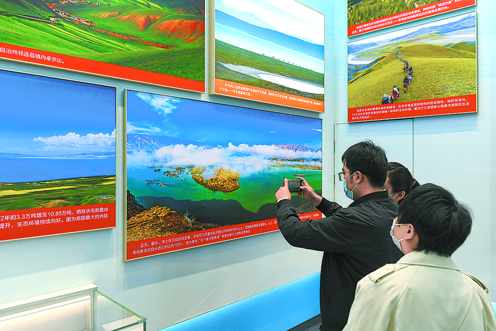 雪豹、兔猻、黑頸鶴、馬麝、廣布紅門蘭、水母雪兔子、紅花綠絨蒿……青海特有的動(dòng)植物照片墻吸引觀眾駐足,珍稀動(dòng)物的生活智慧和罕見(jiàn)植物的生長(zhǎng)歷程通過(guò)攝影師的鏡頭,向世界展示了青海生物多樣性保護(hù)取得的顯著成就。