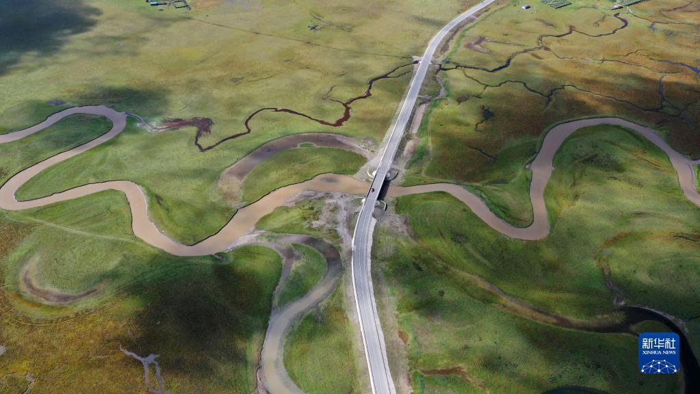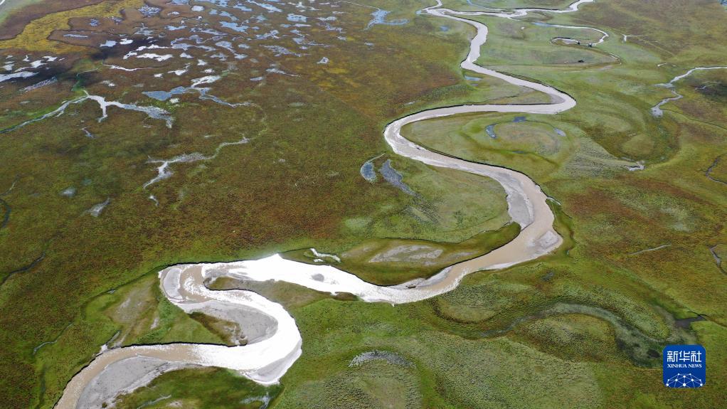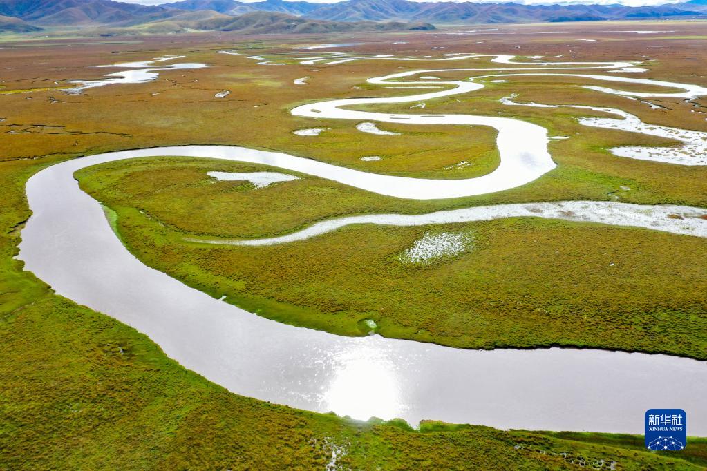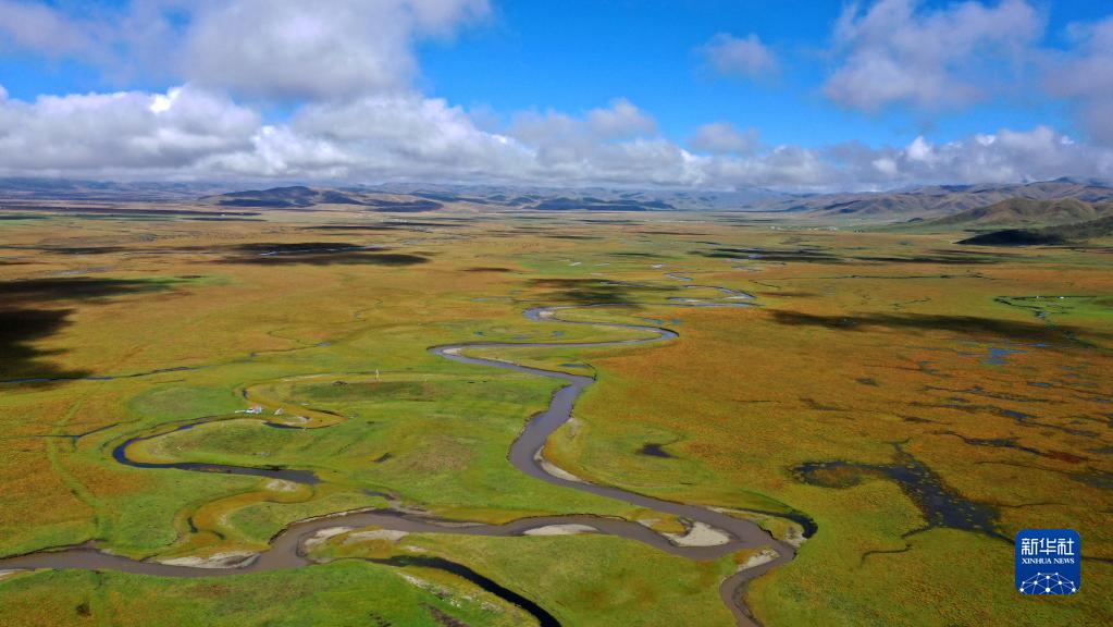 這是2022年9月21日拍攝的瑪曲縣阿萬倉濕地(無人機(jī)照片)。新華社記者 陳斌 攝