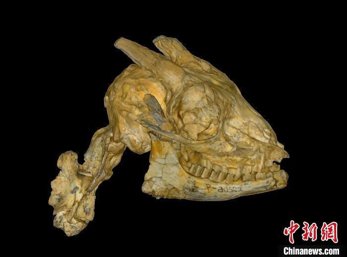 鄧氏臨夏羚的頭骨和頸椎化石標(biāo)本。 中科院古脊椎所 供圖