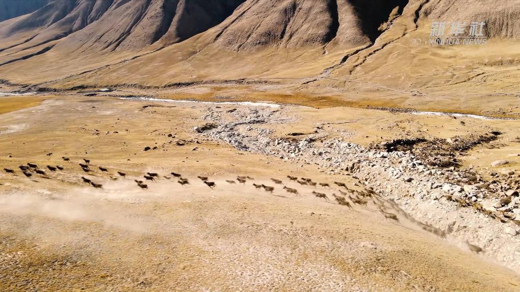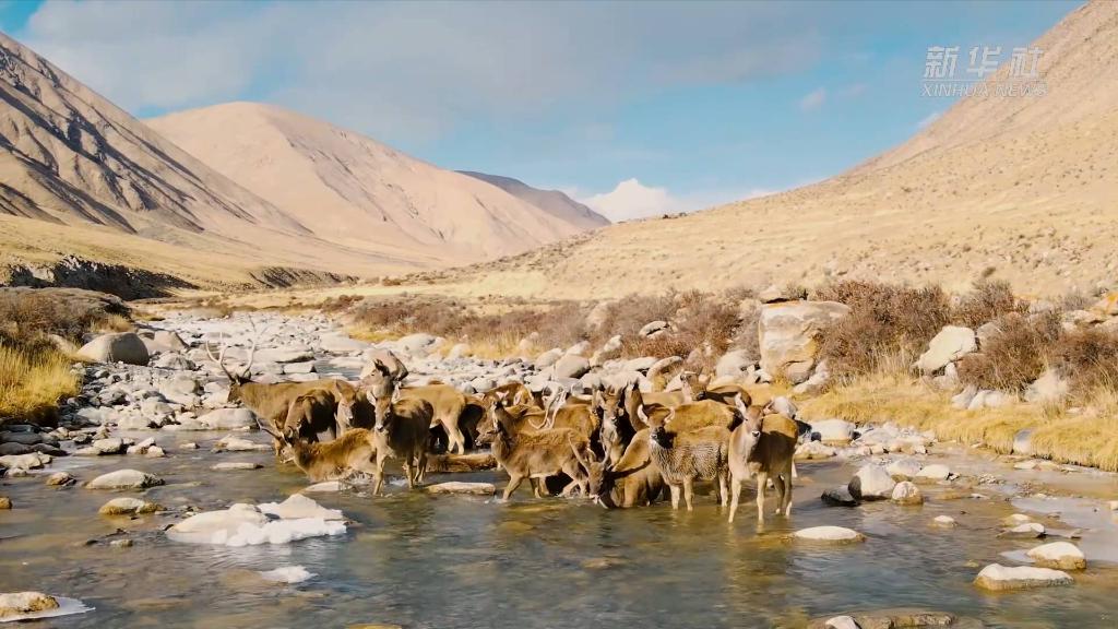 近日,在青海省海西蒙古族藏族自治州德令哈市柏樹(shù)山景區(qū),上百只白唇鹿現(xiàn)身山澗,奔跑嬉戲。
