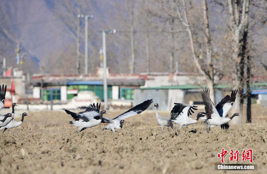 西藏米林迎來(lái)高原“貴客”——黑頸鶴