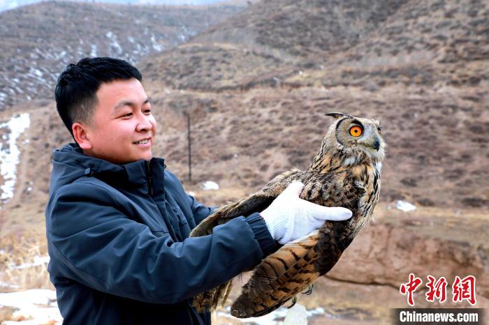 22日,記者從青海省海東市民和縣委宣傳部獲悉,21日下午,該縣林草局野生動物保護站將一只傷愈的國家二級保護動物雕鸮放歸自然。