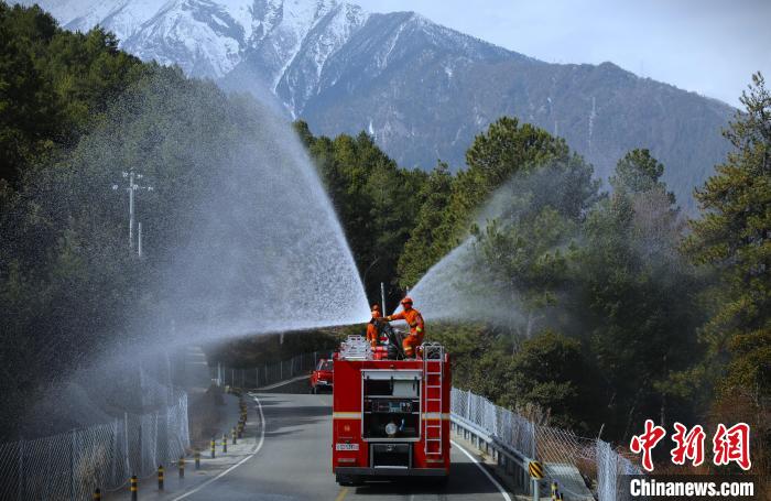 重點(diǎn)林區(qū)開(kāi)展灑水增濕作業(yè)。 西繞拉翁 攝