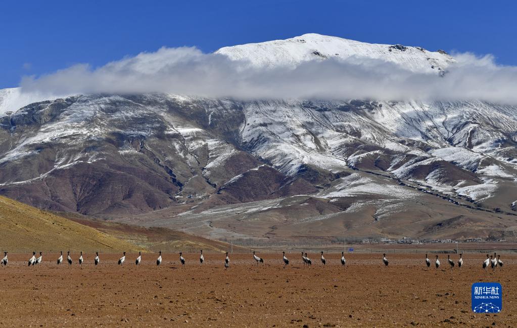 近日,西藏拉薩市各區(qū)縣迎來(lái)降雪。群山被白雪覆蓋,高原壯麗唯美。黑頸鶴、斑頭雁等翩躚起舞,拉薩河谷生機(jī)盎然。