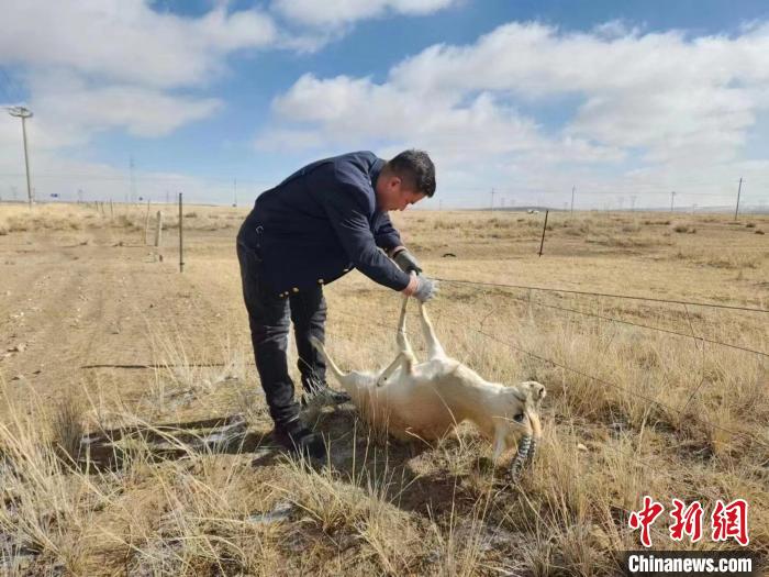 據(jù)介紹,3月12日11時許,青藏集團公司西寧電務段哈爾蓋信號車間哈爾蓋信號工區(qū)的3名職工在徒步前往管內那仁中繼站檢修信號設備途中發(fā)現(xiàn),有動物掛在網(wǎng)圍欄,無法掙脫。