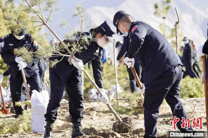 3月16日,民警正在栽植樹(shù)苗?!∷骼蚀瓮? 攝