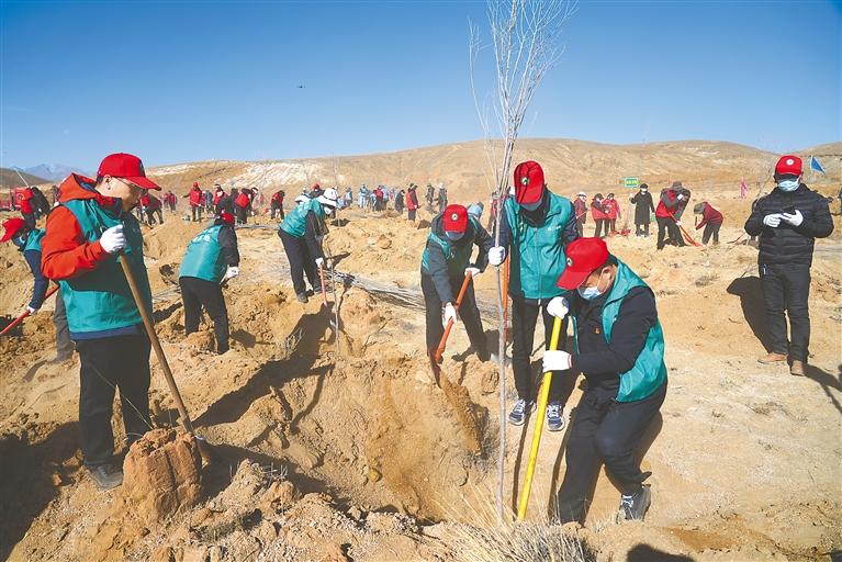 日喀則市謝通門縣干部群眾在種植樹(shù)苗