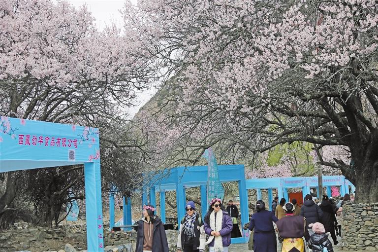 工布江達(dá)縣秀巴千年古堡吸引游客前來觀賞桃花。