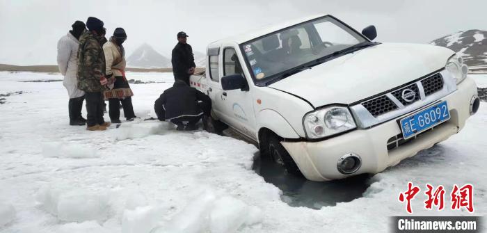 圖為巡護車輛陷車。 謝昆軍供圖