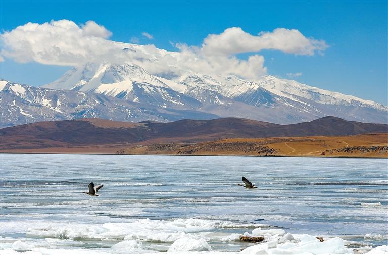 圖為融冰開湖的瑪旁雍錯。記者 次仁平措 通訊員 劉曉東 攝