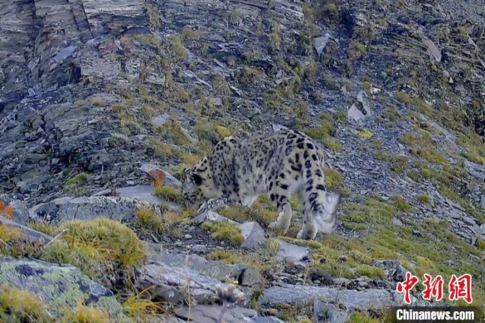 紅外線相機(jī)拍到的國(guó)家一級(jí)保護(hù)動(dòng)物雪豹活動(dòng)影像?!⌒慢埧h林業(yè)和草原局供圖
