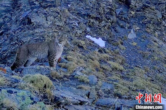 紅外線相機(jī)拍到的國(guó)家二級(jí)保護(hù)動(dòng)物猞猁?!⌒慢埧h林業(yè)和草原局供圖
