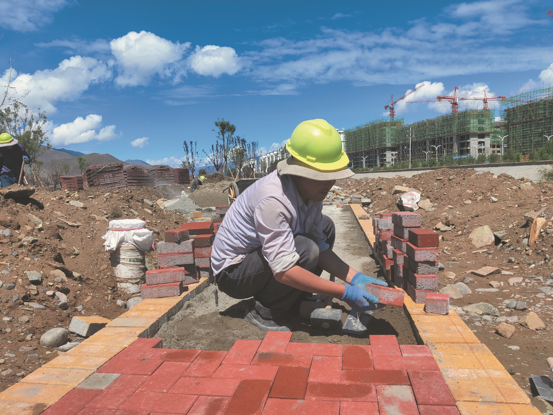 圖為工人正在現(xiàn)場施工。拉薩融媒記者 余洋洋攝