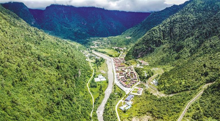 圖為俯瞰勒布溝。(無人機照片)新華社記者 姜帆 攝