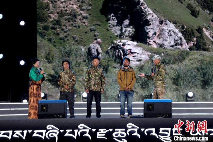 資料圖為紀錄片《雪豹和她的朋友們》導(dǎo)演奚志農(nóng)(右一)在雜多縣分享創(chuàng)作背后的故事。薛蒂 攝