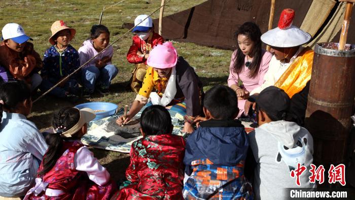 圖為青少年與牧民體驗(yàn)?zāi)ヴ佤?。拉薩市圖書館供圖