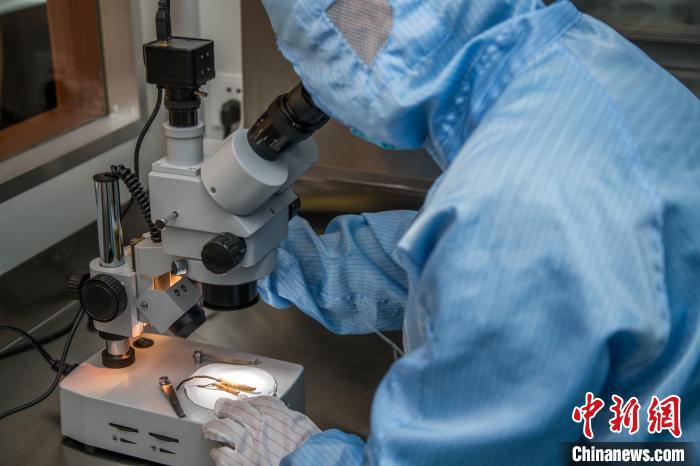 圖為科研人員對(duì)培育的冬蟲夏草進(jìn)行研究。(資料圖) 陳超 供圖