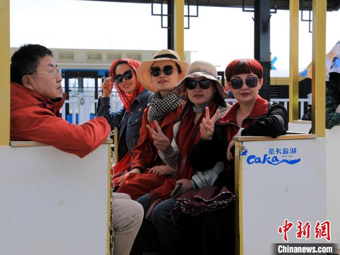 圖為游客乘坐茶卡鹽湖景區(qū)小火車。王生榮 攝