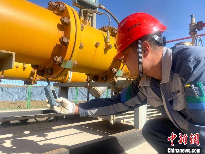 圖為青海鹽湖藍(lán)科鋰業(yè)工作人員檢查設(shè)備狀態(tài)。(鹽湖股份供圖)