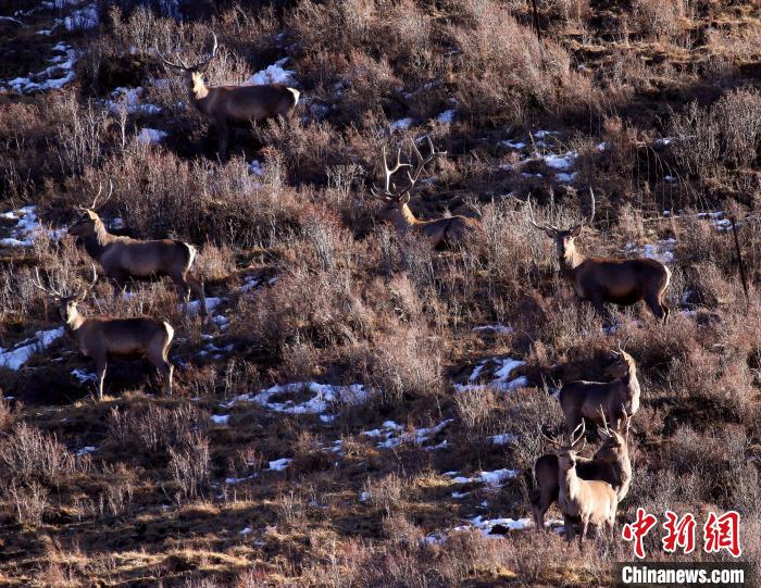 圖為馬鹿在山間漫步。尕布藏才郎 攝