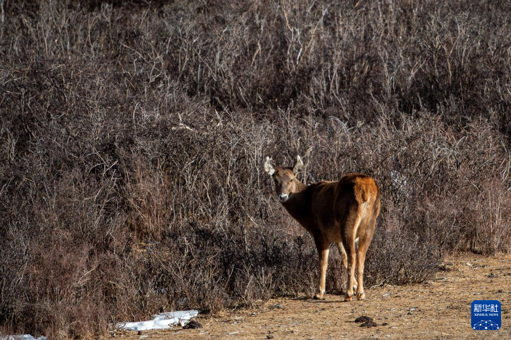 西藏山南市桑日西藏馬鹿縣級(jí)自然保護(hù)區(qū)內(nèi)的西藏馬鹿(1月14日攝)。新華社記者 旦增尼瑪曲珠 攝