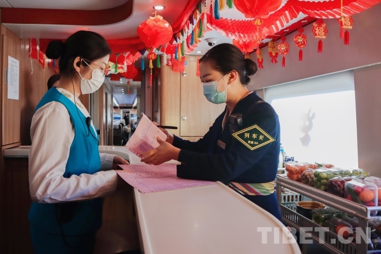“由于春運(yùn)期間旅客人數(shù)的增多,為滿足高原群眾出行需要,拉日鐵路加開了多趟臨客列車,我今天所值乘的C921次就是其中之一,列車到達(dá)日喀則后會立即變更為C922次返回拉薩。”列車長周晶今天將值乘4趟列車,在拉薩和日喀則間往返2個(gè)來回,行程共計(jì)1000余公里,從早上8點(diǎn)上車準(zhǔn)備到20:50返回拉薩休息,周晶一天的工作有將近12個(gè)小時(shí)都是在列車上度過的,一日三餐都在列車上解決,一天下來光在列車上就要走將近2萬步。