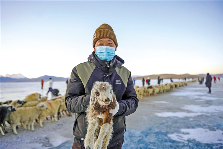全國(guó)各地的游客匯聚而來,拍攝、記錄、欣賞、感嘆,一睹最美藍(lán)冰與冰上牧羊構(gòu)成的獨(dú)特自然人文景觀。在他們的鏡頭里,每一個(gè)牧羊人、每一只羊都是“大明星”。
