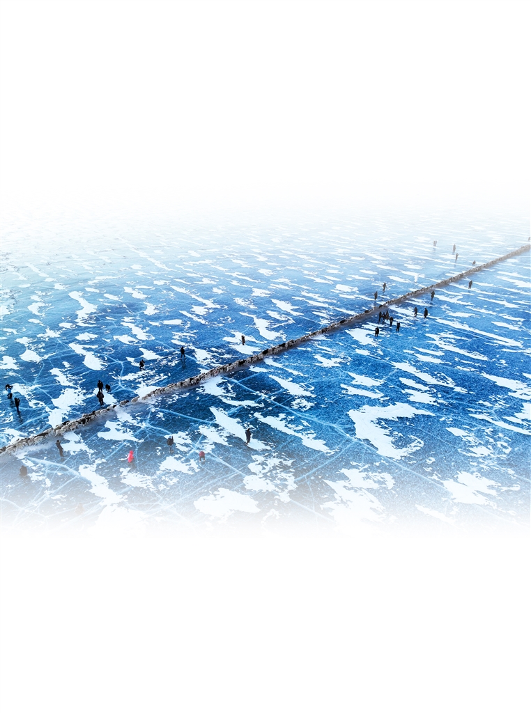 村里的老人此前已到冰面上反復(fù)查看,找到了一條距離最短、冰層夠厚的上島路線。此時(shí),牧民背起裝滿爐灰的袋子,沿著路線仔細(xì)把爐灰撒在冰面上,鋪出一條“羊腸小道”。
