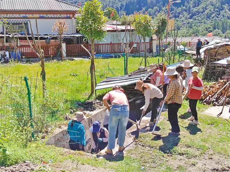 圖為林芝市墨脫縣格當鄉(xiāng)多龍崗村群眾自發(fā)清理河道排水渠。記者 王敏 通訊員 郎玲 攝