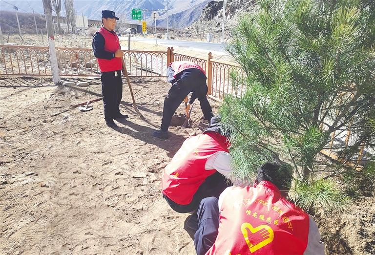 圖為拉薩市堆龍德慶區(qū)古榮護(hù)路大隊的隊員在植樹。記者 旦增蘭澤 通訊員 拉巴 攝