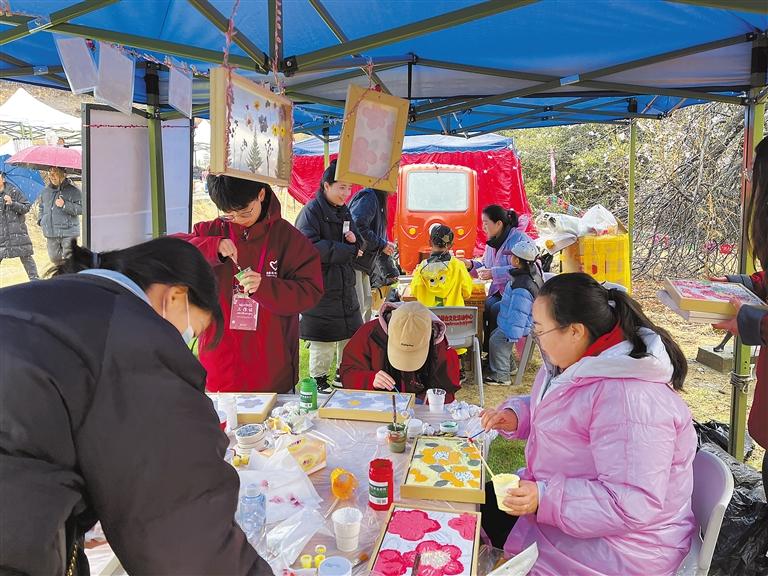 察隅縣桃花節(jié)的DIY活動(dòng)現(xiàn)場(chǎng),參與者將盛開(kāi)的桃花作為美術(shù)素材融入自己制作的肌理畫(huà)中。