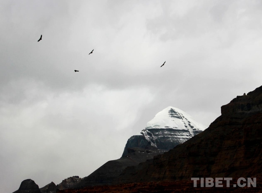 圖為位于西藏自治區(qū)阿里地區(qū)普蘭縣巴嘎鄉(xiāng)的岡仁波齊周圍群鷹翱翔 攝影:劉莉