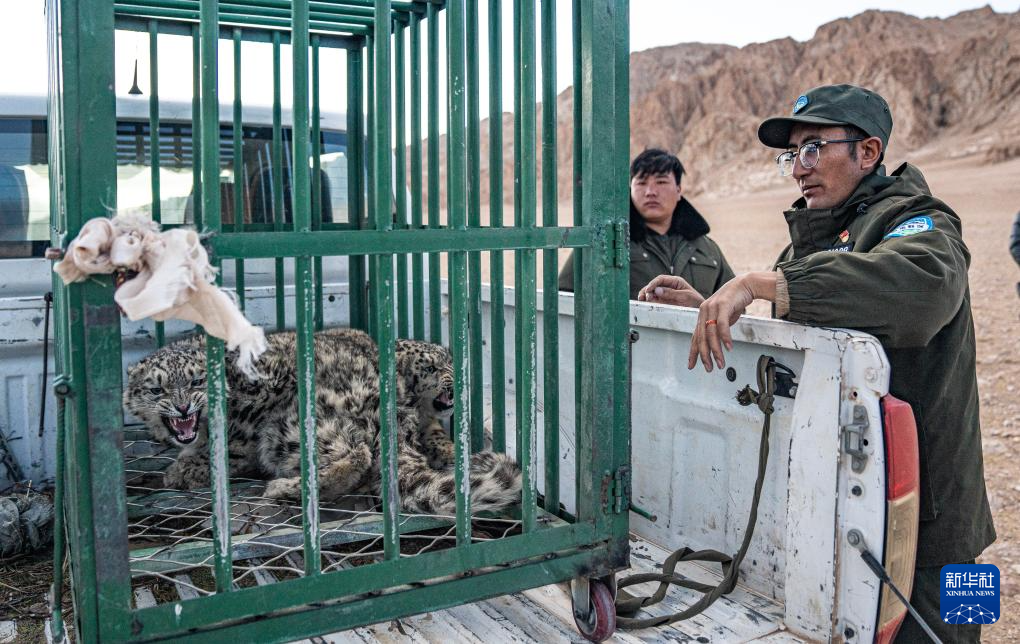 尼瑪縣野生動(dòng)物管護(hù)隊(duì)員在運(yùn)送即將放歸自然的雪豹(5月13日攝)。新華社記者 丁增尼達(dá) 攝