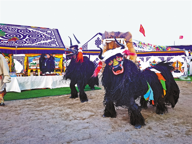 由300名演員將象征平安、吉祥的馬、牦牛、牛角、五彩哈達等元素融入表演全過程,藝術(shù)地展現(xiàn)獨有的開湖祈福場景。