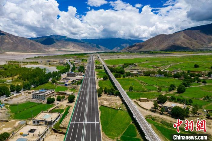 圖為西藏拉薩至日喀則高等級公路(左)和拉日鐵路(右)并行。(西藏自治區(qū)交通運輸廳 供圖)