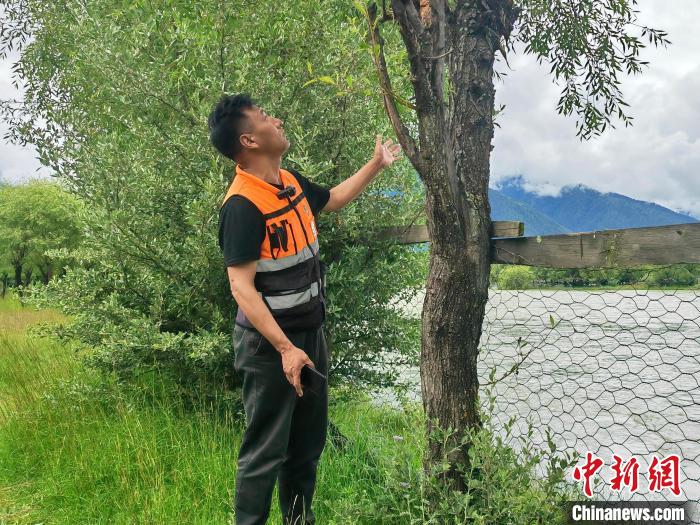 “我每天要在公園內(nèi)巡邏3次,查看樹木上有沒有病蟲害,濕地內(nèi)魚類、鳥類的生存狀態(tài),防止他人破壞環(huán)境,動員村民們共同保護生態(tài)環(huán)境?!苯眨瑥氖挛鞑亓种パ拍釃覞竦毓珗@管護員工作18年的旺扎接受中新網(wǎng)記者采訪時表示。