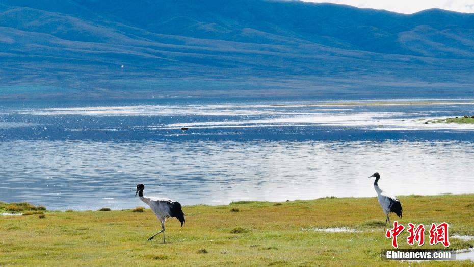 金秋9月,天氣漸涼,位于柴達(dá)木盆地的青海省海西州都蘭縣阿拉克湖國(guó)家濕地公園也日漸喧鬧起來(lái),大批的候鳥(niǎo)從北方遷徙至此,提前來(lái)此過(guò)冬。9月18日,都蘭縣融媒體中心記者拍攝到了國(guó)家一級(jí)保護(hù)動(dòng)物黑頸鶴活動(dòng)的影像。畫(huà)面中,一對(duì)國(guó)家一級(jí)重點(diǎn)保護(hù)野生動(dòng)物、高原特有鶴類(lèi)黑頸鶴在都蘭縣巴隆鄉(xiāng)阿拉克湖國(guó)家濕地公園的草原上嬉戲、覓食、“翩翩起舞”。阿拉克湖國(guó)家濕地公園位于青海省都蘭縣南部,屬于昆侖山系東部高原腹地,在布爾汗布達(dá)山南麓東西向延伸的河谷盆地內(nèi)。阿拉克湖濕地公園區(qū)域雖氣候寒冷,但這里高寒沼澤草甸景象壯觀,野生動(dòng)物眾多,具有獨(dú)特的生物多樣性價(jià)值。圖為兩只黑頸鶴在湖邊漫步。