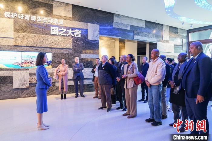 圖為代表團(tuán)一行在青海省自然資源博物館內(nèi)參觀。中新社記者 馬銘言 攝