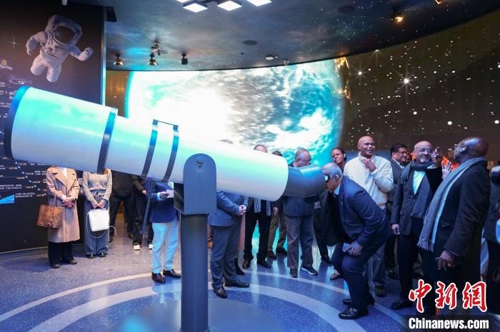 圖為代表團(tuán)成員在青海省自然資源博物館內(nèi)參觀、交流、體驗。中新社記者 馬銘言 攝