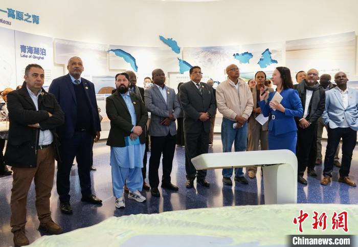 圖為代表團(tuán)一行在青海省自然資源博物館內(nèi)了解青海湖泊。中新社記者 馬銘言 攝