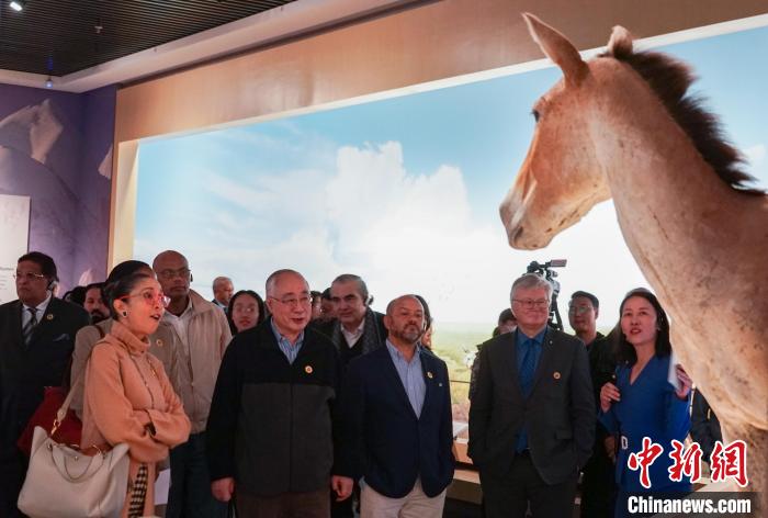 圖為代表團(tuán)一行參訪青海省自然資源博物館。中新社記者 馬銘言 攝