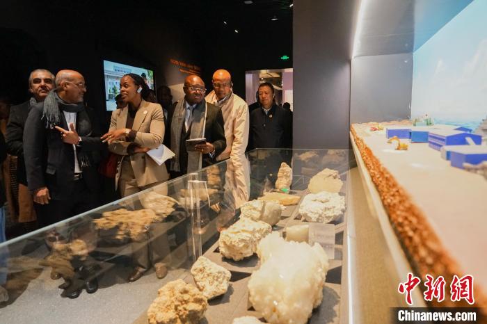 圖為代表團(tuán)一行在青海省自然資源博物館內(nèi)了解青海省礦物資源。中新社記者 馬銘言 攝