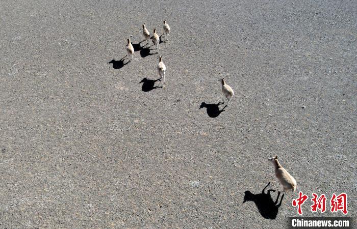 圖為12月8日,棲息在魯確塘草原的藏羚羊。(無人機照片)中新社記者 李林 攝