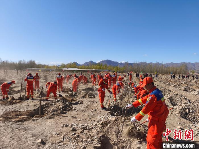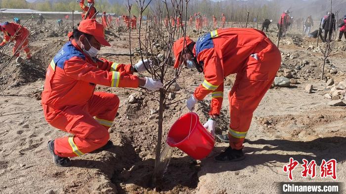 圖為日喀則市森林消防大隊(duì)義務(wù)植樹活動(dòng)現(xiàn)場。洛桑頓珠 攝