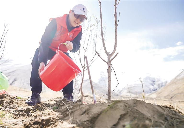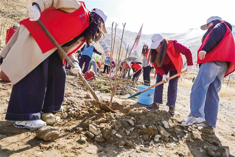 本次“遇‘建’南北山·‘?dāng)?shù)’植生態(tài)林——我在西藏有棵樹”大型公益植樹活動(dòng),旨在踐行綠水青山就是金山銀山理念,以實(shí)際行動(dòng)深入落實(shí)西藏建設(shè)國家生態(tài)文明高地部署要求,錨定“五年增綠山川、十年綠滿拉薩”目標(biāo),進(jìn)一步激發(fā)社會(huì)大眾的愛林護(hù)林造林意識(shí)和綠色生態(tài)發(fā)展意識(shí)。近年來,中國建設(shè)銀行西藏自治區(qū)分行始終堅(jiān)持以人民為中心的發(fā)展思想,堅(jiān)持“三帶一融合”做公益,以綠色金融為筆,以生態(tài)建設(shè)為卷,在守護(hù)高原生態(tài)屏障的征程中篤行不怠。中國建設(shè)銀行西藏自治區(qū)分行黨委委員、副行長鄧存云表示:“中國建設(shè)銀行西藏自治區(qū)分行積極承擔(dān)國有大行社會(huì)責(zé)任,致力公益事業(yè)發(fā)展,始終將綠色金融理念融入生態(tài)文明發(fā)展血脈,堅(jiān)定不移地支持生態(tài)建設(shè)事業(yè)。自2022年承接拉薩市白定東2-1號(hào)片區(qū)綠化工程任務(wù)以來,累計(jì)投入項(xiàng)目資金3000余萬元,累計(jì)種植各類苗木32萬余株(含補(bǔ)植),種植覆蓋率和成活率均達(dá)90%以上,有力帶動(dòng)當(dāng)?shù)貏趧?wù)用工8000余人次,累計(jì)為南北山綠化工程發(fā)放專項(xiàng)貸款6.46億元,取得了較好的生態(tài)效益、經(jīng)濟(jì)效益和鄉(xiāng)村振興效益?!?/p>