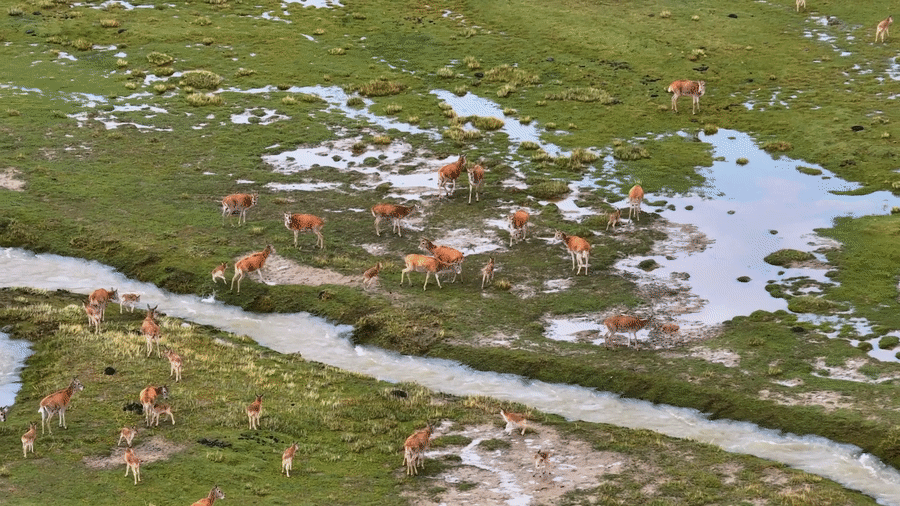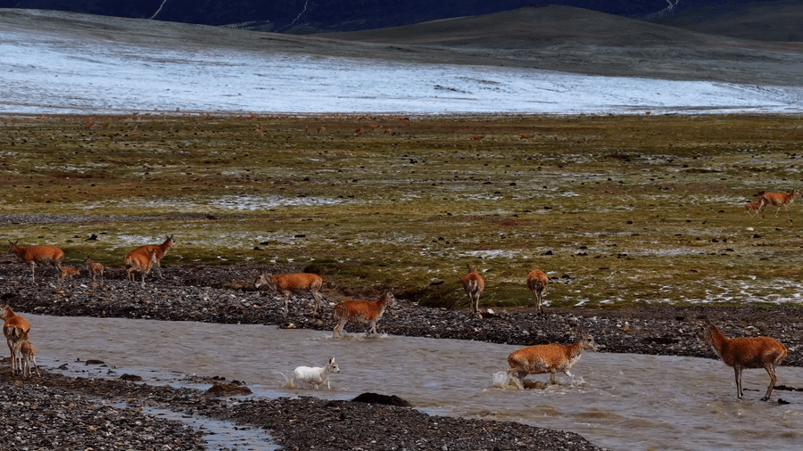 輝煌60載 魅力新西藏|藏羚羊群集結渡河 白色小藏羚成最靚 “顯眼包”
