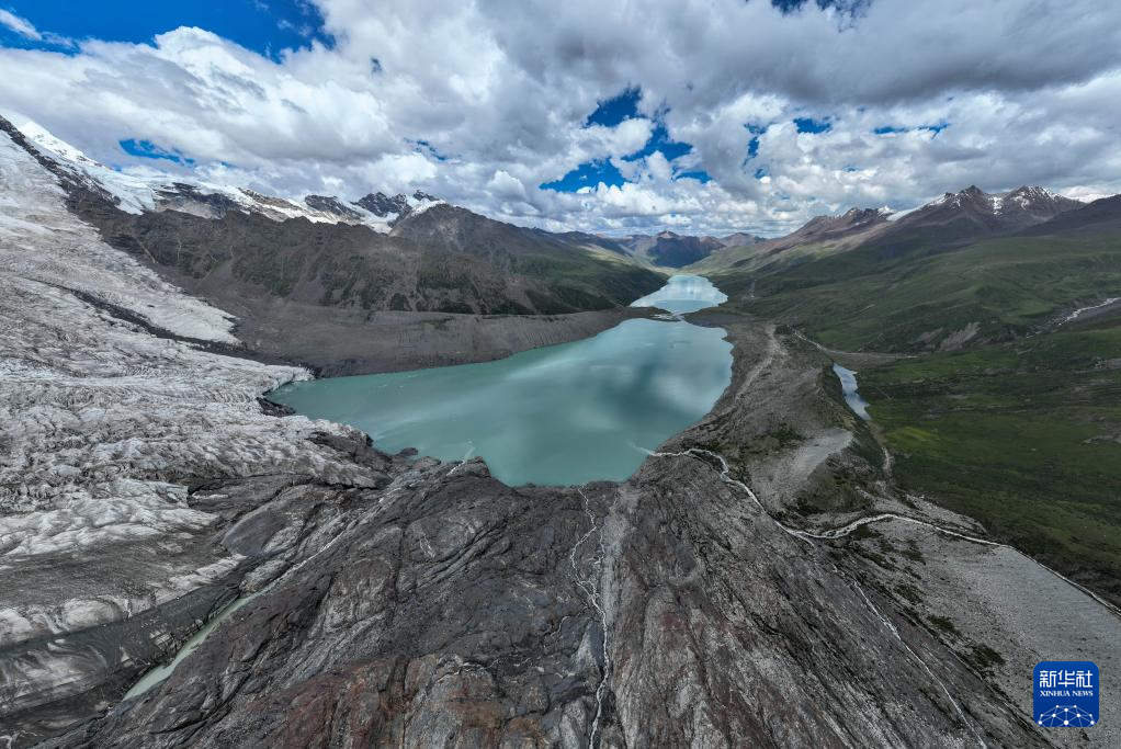 7月19日拍攝的薩普冰川冰舌末端(無人機照片)。新華社記者 晉美多吉 攝